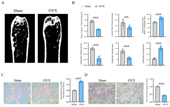 OVX mice were generated by performing bilateral ovariectomy or sham surgery on 2-month-old female wild-type (WT) C57BL/6 mice. Following a 2-month recovery period after ovariectomy, the mice were euthanized and subjected to Micro-CT analysis.