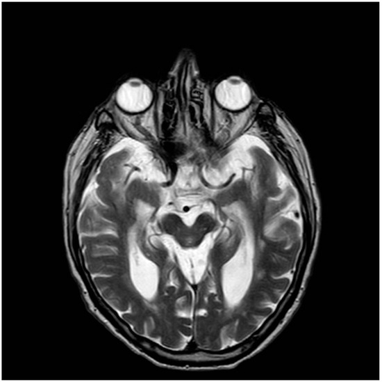 - Portet, M.; Filyridou, M.; Howlett, D.C. Hot cross bun sign. J. Neurol. 2019, 266, 2573–2574. [Google Scholar] [CrossRef]