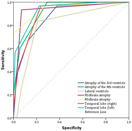 | Atrophy of the left temporal lobe | 0.961 | 0.94–0.98 | <0.005 |