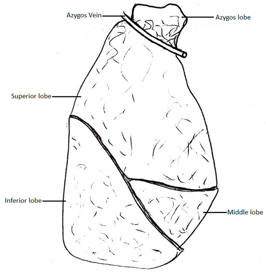- Kotov, G.; Dimitrova, I.N.; Iliev, A.; Groudeva, V. A Rare Case of an Azygos Lobe in the Right Lung of a 40-year-old Male. Cureus 2018, 10, e2780. [Google Scholar] [CrossRef] [PubMed]