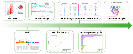 Additionally, Ouyang et al. utilized the same datasets to identify DEGs and long non-coding RNAs (lncRNAs) involved in KTCN [63]. They identified 20 key genes through protein–protein interaction (PPI) networks and proposed several miRNAs (e.g., miR-4298 and miR-4494) as potential regulatory players in KTCN. While this study focused on non-coding RNAs, our research identified key protein-coding genes (e.g., KRT14, JUN, KRT15, S100A8, COL1A1) and extended the analysis by using machine learning to identify the most relevant genes across datasets. By employing multiple ML algorithms, we selected genes that showed consistent results across three datasets, offering a more comprehensive and reliable set of potential biomarkers for KTCN.