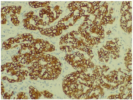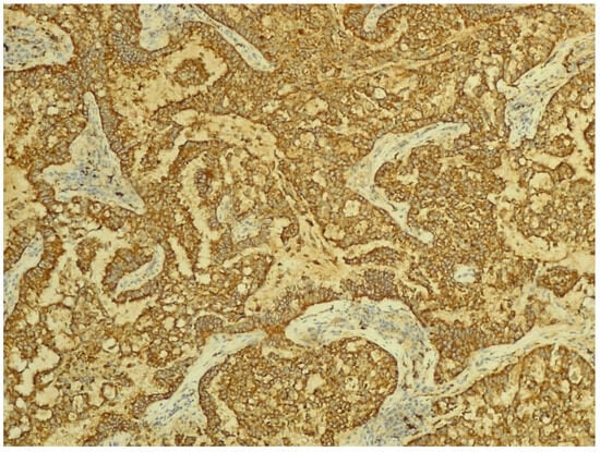 Immunohistochemical staining for cytokeratin 7 of non-mucinous type lung adenocarcinoma (objective ×400, Leica DM750 microscope (Leica Microsystems, Heerbrugg, Switzerland) with digital camera).