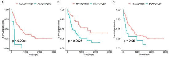 3.3. Survival Analysis of Candidate Genes in AML
