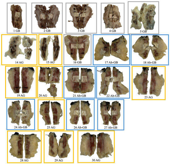 The remaining 22 rabbits are distributed across the three experimental groups as described in Table 3. Their macroscopic aspect is shown in Figure 2.