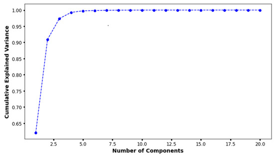 The results of principal component analysis. When there were three principal components, the cumulative explained variance value was 0.974.