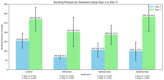 Menni, A.; Tzikos, G.; Goulas, P.; Chatziantoniou, G.; Vouchara, A.; Apostolidis, A.S.; Ioannidis, A.; Germanidis, G.; Papazoglou, L.G.; Giouleme, O.; et al. The Effects of the Biological Agents Infliximab, Vedolizumab, and Ustekinumab on Intestinal Anastomosis: An Experimental Study in Rats. Biomedicines 2025, 13, 1079. https://doi.org/10.3390/biomedicines13051079