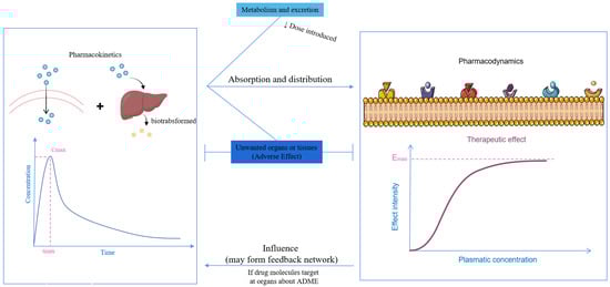 When considering the pharmacokinetics that influence the effect of antidepressants, metabolism and distribution are the two primary factors that determine the utilization of administered antidepressants. The body presents numerous barriers, stemming from both anatomical features and the physiochemical properties of the antidepressants themselves. Furthermore, pharmacokinetics serves as the foundation for the intensity of the pharmacodynamic response, and they can form a feedback network that mutually affects each other (Figure 3).