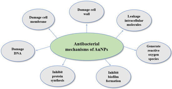 - Patil, M.P.; Kim, G.-D. Eco-friendly approach for nanoparticles synthesis and mechanism behind antibacterial activity of silver and anticancer activity of gold nanoparticles. Appl. Microbiol. Biotechnol. 2017, 101, 79–92. [Google Scholar] [CrossRef] [PubMed]