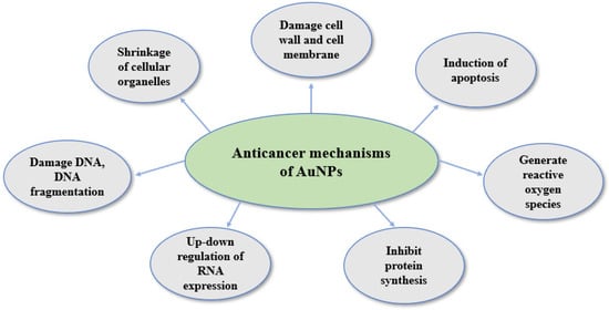 - Aljarba, N.H.; Imtiaz, S.; Anwar, N.; Alanazi, I.S.; Alkahtani, S. Anticancer and microbial activities of gold nanoparticles: A mechanistic review. J. King Saud. Univ.-Sci. 2022, 34, 101907. [Google Scholar] [CrossRef]