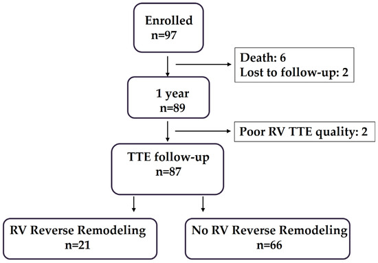 - Badagliacca, R.; Poscia, R.; Pezzuto, B.; Papa, S.; Reali, M.; Pesce, F.; Manzi, G.; Gianfrilli, D.; Ciciarello, F.; Sciomer, S.; et al. Prognostic Relevance of Right Heart Reverse Remodeling in Idiopathic Pulmonary Arterial Hypertension. J. Heart Lung Transplant. 2017; 37, 195–205. [Google Scholar] [CrossRef]