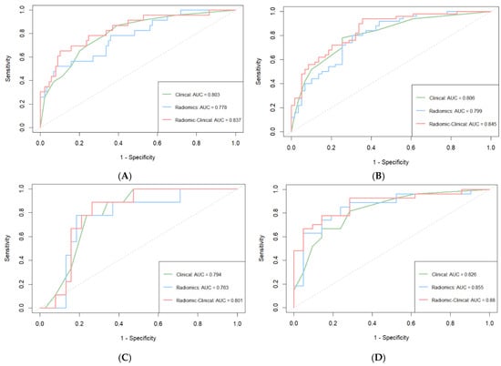 | Radiomic–clinical model | Training | 0.789 (0.734–0.845) | 0.837 (0.741–0.932) | 0.845 (0.773–0.917) |