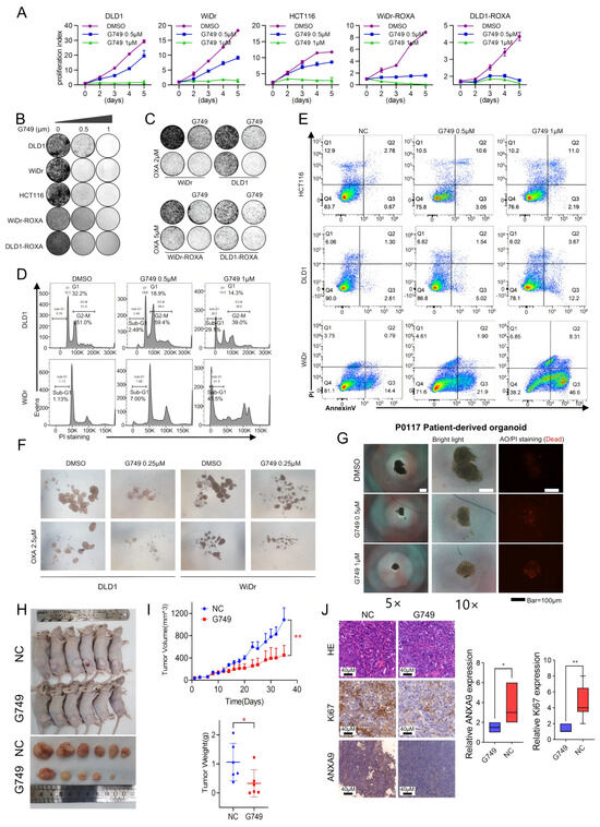 3.4. G749 Inhibits Proliferation of CRC Tumor Both In Vitro and In Vivo