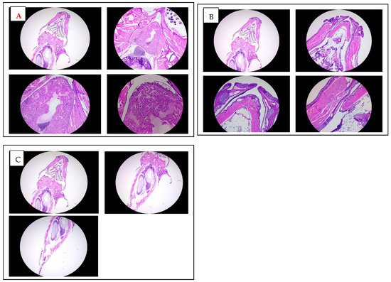 Paraffin-embedded zebrafish were sectioned using a microtome (Leica RM2255, Leica Biosystems, Wetzlar, Germany) at a thickness of 5 µm. The sections were mounted onto glass slides (Superfrost Plus, Thermo Fisher Scientific, Waltham, MA, USA) and air-dried before deparaffinization in xylene and rehydration through a descending ethanol gradient. Sections were stained with hematoxylin and eosin (H&E) for histological examination.