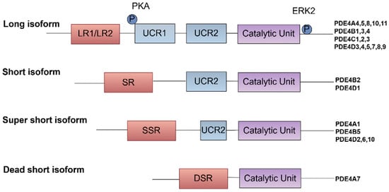 - Kyurkchieva, E.; Baillie, G.S. Short PDE4 Isoforms as Drug Targets in Disease. Front. Biosci. 2023, 28, 133. [Google Scholar] [CrossRef]
