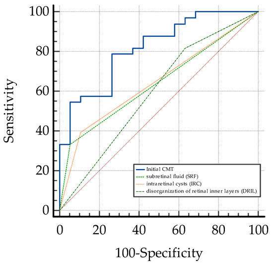 APA StyleErgin, E., Dascalu, A. M., Stana, D., Tribus, L. C., Arsene, A. L., Nedea, M. I., Serban, D., Nistor, C. E., Tudor, C., Dumitrescu, D., Stoica, P. L., & Cristea, B. M. (2025). Predictive Role of Complete Blood Count-Derived Inflammation Indices and Optical Coherence Tomography Biomarkers for Early Response to Intravitreal Anti-VEGF in Diabetic Macular Edema. Biomedicines, 13(6), 1308. https://doi.org/10.3390/biomedicines13061308