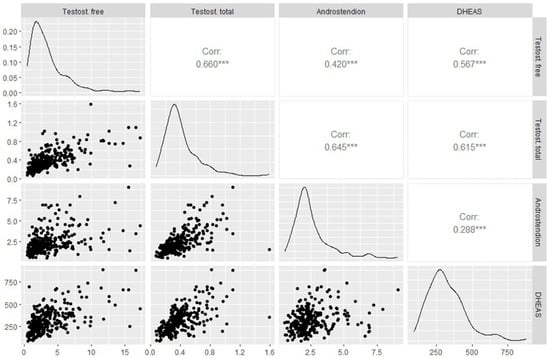Analysis of correlations between androgen hormone concentrations. *** for partial correlations.