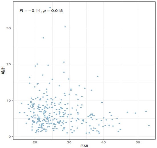 Correlation between BMI and serum AMH concentrations (Spearman’s correlation coefficient).