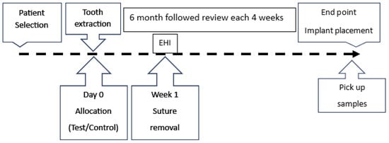 The timeline of the procedure. ARP = alveolar ridge preservation; EHI = early healing index (Wachtel index).