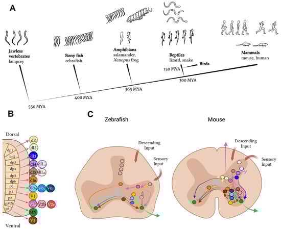 - Vasudevan, D.; Liu, Y.C.; Barrios, J.P.; Wheeler, M.K.; Douglass, A.D.; Dorsky, R.I. Regenerated interneurons integrate into locomotor circuitry following spinal cord injury. Exp. Neurol. 2021, 342, 113737. [Google Scholar] [CrossRef] [PubMed]