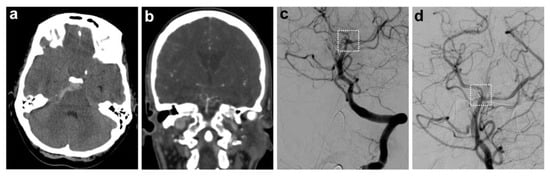 - Colen, T.W.; Wang, L.C.; Ghodke, B.V.; Cohen, W.A.; Hollingworth, W.; Anzai, Y. Effectiveness of MDCT Angiography for the Detection of Intracranial Aneurysms in Patients with Nontraumatic Subarachnoid Hemorrhage. Am. J. Roentgenol. 2007, 189, 898–903. [Google Scholar] [CrossRef]