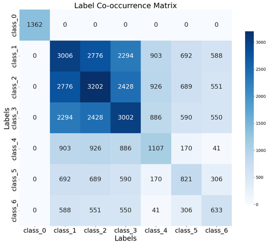 In contrast, the NMC dataset is structured as a multi-label classification problem, allowing multiple specific lesion types to be simultaneously present in a single image. While the dataset captures the co-occurrence of different lesions, the traditional multi-label classification approach treats each lesion type as a separate classification task with independent sigmoid output functions. This modeling approach enables the model to learn specific features for each lesion type but does not explicitly incorporate the potential clinical relationships between different lesions. Figure 4 illustrates the correlations between labels in the NMC dataset, revealing that certain lesion types frequently co-occur, suggesting underlying pathophysiological relationships.