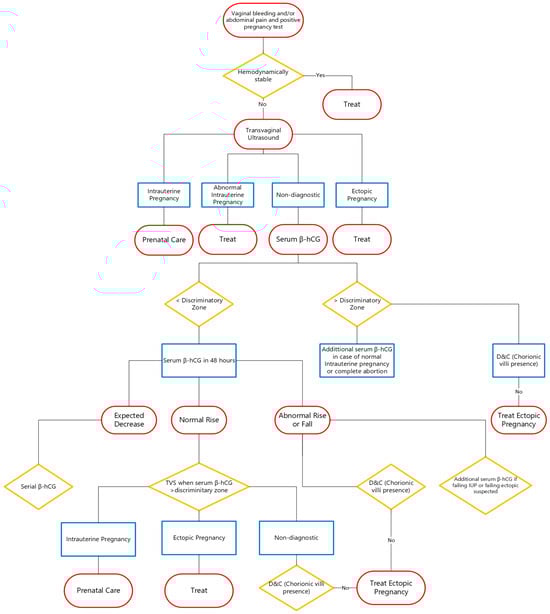 - Hendriks, E.; Rosenberg, R.; Prine, L. Ectopic pregnancy: Diagnosis and management. Am. Fam. Physician 2020, 101, 599–606. [Google Scholar] [PubMed]