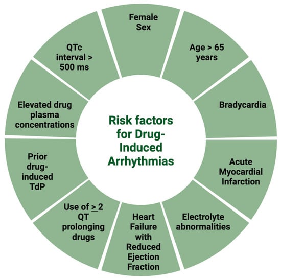 - Tisdale, J.E.; Chung, M.K.; Campbell, K.B.; Hammadah, M.; Joglar, J.A.; Leclerc, J.; Rajagopalan, B.; On behalf of the American Heart Association Clinical Pharmacology Committee of the Council on Clinical Cardiology and Council on Cardiovascular and Stroke Nursing. Drug-Induced Arrhythmias: A Scientific Statement From the American Heart Association. Circulation 2020, 142, E214–E233. [Google Scholar] [CrossRef]