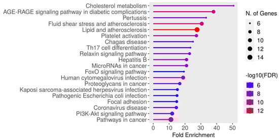 Network pharmacology has the potential to influence the drug development process at multiple stages, including target identification, lead discovery and optimization, mode of action, preclinical efficacy, and safety evaluation [107]. In turn, this could make it easier to systematically describe drug targets, which would help lower the usually high rate of project failure that comes with discovery efforts. Based on the known and predicted protein–protein interaction data for many organisms, the STRING database shows both physical interactions and functional associations, along with confidence scores that show how reliable the data are. Cytoscape (version 3.8.0), on the other hand, is built for analyzing and visualizing massive networks, and it gives users a lot more leeway when it comes to adding new data and displaying it on top of the existing networks. In Cytoscape, networks are graphs with nodes (genes and proteins) and edges (reactions). In this experimental investigation, a degree indicates the number of a node’s immediate neighbors. The more directly related nodes a node has, the greater its influence. A node’s betweenness centrality is determined by the shortest path that can be taken between any two other nodes via that node. Closeness centrality is defined as the reciprocal of the average shortest path distance between a node and all other nodes in the network; the greater the value, the greater the centrality of the node, indicating that the signal is transmitted from one node to other nodes more rapidly. The network’s nodes represent the target or active component, while the edges denote how the two components interact with one another. Each of the nodes is either a protein or an active component. Biological molecules communicate with each other through the edge between nodes. The highest degree indicates that the targeted genes have a significant correlation with each other; as a result, all these genes may be potential critical targets.