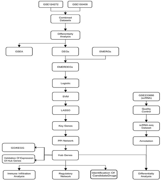 The roadmap (Figure 1) below summarizes the main analytical steps used to identify hub genes and candidate drugs through integrated multi-omics analysis.