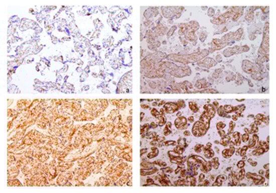 As positive controls, archival samples of placental samples from the first trimester of normal pregnancies were used. Negative controls included tissue sections processed identically but with the omission of the primary antibody.