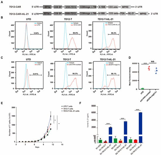 3.3. Generation of hIL-21-Armed VHH-7D12 Nanobody CAR-T Cells