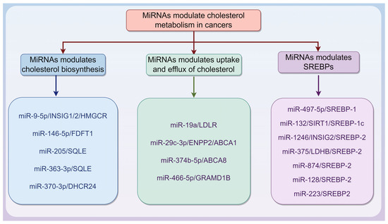 Overview of miRNAs regulating cholesterol metabolism in cancer.