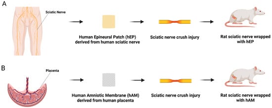 In this study, we introduce a novel strategy for enhancing nerve regeneration after trauma by applying hEP to the nerve crush injury site. The efficacy of hEP is compared with commercially available hAM, hypothesizing that hEP will create a more conducive microenvironment for nerve repair, minimize adhesions and scar tissue formation, and foster more effective nerve regeneration, ultimately leading to improved functional recovery.