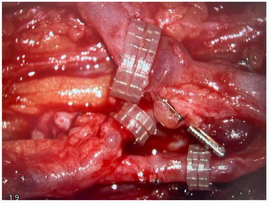 In the vast majority, the microanastomoses were performed between the FFF pedicle and branches of radial vessels. In every case, there was one arterial anastomosis and two veins connected. Veins from the FFF pedicle were anastomosed to both the superficial and deep veins of the upper limb (most commonly the cephalic or basilic vein). All venous microanastomoses were carried out using the microvascular coupler (Synovis Micro Companies Alliance, Birmingham, AL, USA). The average size of the coupler used was 3.0 mm (range 2–4 mm). (Figure 5).
