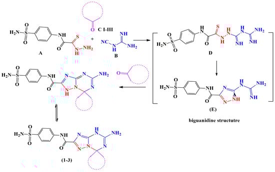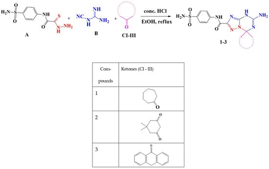 General Procedures for the Synthesis of 5′-Amino-N-(4-sulfamoylphenyl)-spiro[1,7′-[1,2,4]triazolo[1,5-a][1,3,5]triazine]-2′-carboxamide Derivatives (1–3)