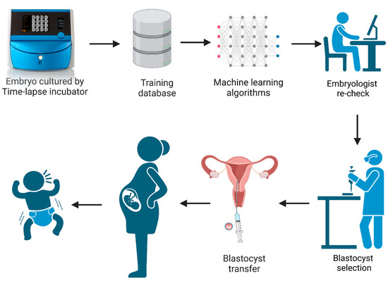 - Tran, D.; Cooke, S.; Illingworth, P.J.; Gardner, D.K. Deep learning as a predictive tool for fetal heart pregnancy following time-lapse incubation and blastocyst transfer. Hum. Reprod. 2019, 34, 1011–1018. [Google Scholar] [CrossRef] [PubMed]
