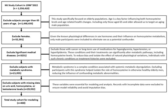 - No current medication for metabolic syndrome: Metabolic syndrome is a complex condition associated with systemic metabolic dysregulation. Excluding participants with this syndrome helped isolate the role of homocysteine in otherwise healthy elderly men, reducing the influence of confounding metabolic abnormalities.