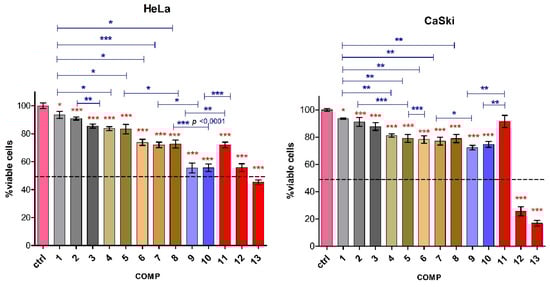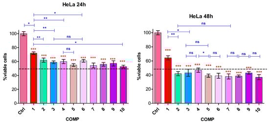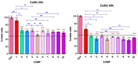 - Sun, X.; Fu, P.; Xie, L.; Chai, S.; Xu, Q.; Zeng, L.; Wang, X.; Jiang, N.; Sang, M. Resveratrol inhibits the progression of cervical cancer by suppressing the transcription and expression of HPV E6 and E7 genes. Int. J. Mol. Med. 2021, 47, 335–345. [Google Scholar] [CrossRef] [PubMed]