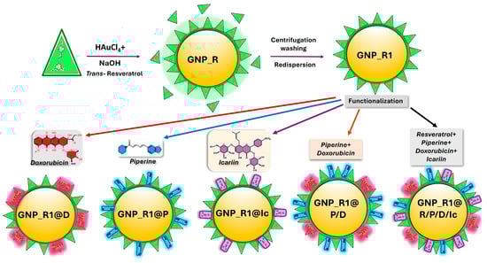 - Zhang, D.; Zhang, J.; Zeng, J.; Li, Z.; Zuo, H.; Huang, C.; Zhao, X. Nano-Gold Loaded with Resveratrol Enhance the Anti-Hepatoma Effect of Resveratrol In Vitro and In Vivo. J. Biomed. Nanotechnol. 2019, 15, 288–300. [Google Scholar] [CrossRef] [PubMed]