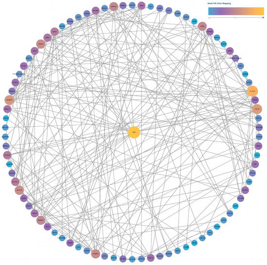 In terms of high-fluence irradiation on NHDFs, there were up to 498 nodes in the network (Figure S15). Among those differentially expressed genes, CDC20 ranked first, followed by AURKB, CCNB1, CCNB2, PLK1, CDCA3, TPX2, PTTG1, and SPAG5, after calculation. All these genes had scores exceeding 41,000, indicating that they were hub genes in the high-fluence group. TP53 presented the highest node degree of 64, which indicated broad connections between TP53 and other differentially expressed genes after 18 J/cm2 irradiation.