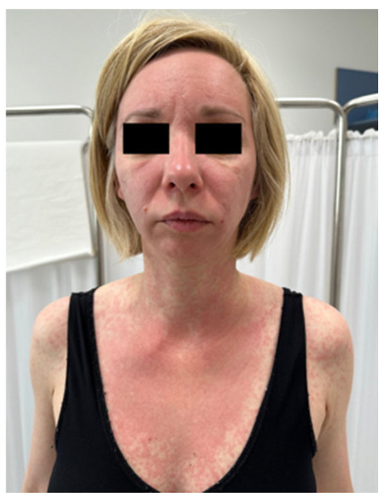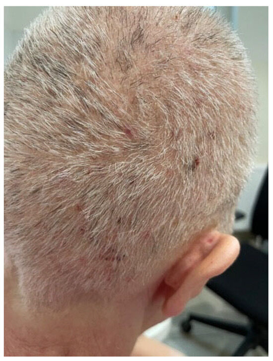 Additionally, CDK4/6 inhibitors (e.g., palbociclib, ribociclib) have been associated with psoriasiform, papular, and eczematous eruptions, particularly in individuals with pre-existing atopy or psoriasis [112,113,114] (Figure 6 and Figure 7).
