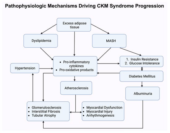The pathophysiology of CKM syndrome reflects a complex interplay between metabolic dysregulation, cardiovascular strain, and progressive kidney dysfunction.