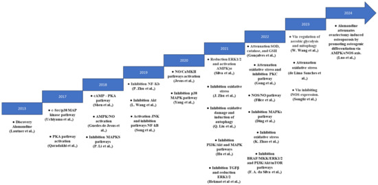 From 2018 onwards, studies expanded to explore its anti-inflammatory and antifibrotic properties, with particular attention to its interactions with signaling pathways like MAPK and Adenosine Monophosphate-activated protein kinase (AMPK). These discoveries underscore ALA’s therapeutic promise in addressing oxidative stress and fibrotic diseases. This timeline underscores the ongoing importance of ALA in biomedical research, highlighting the need for further studies to explore its therapeutic applications in areas such as metabolic disorders or neuroprotection.