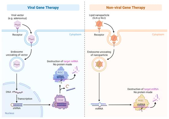 Gene addition using viral vectors represents the most clinically advanced strategy in gene therapy for inherited hematologic disorders. In hemophilias A and B, adeno-associated virus (AAV) vectors are the most commonly used platforms for delivering functional copies of the F8 and F9 genes to hepatocytes. These vectors are non-integrating, replication-defective viruses that offer long-term episomal expression with minimal risk of insertional mutagenesis [64]. An illustration of viral and non-viral gene therapy is provided in Figure 3.