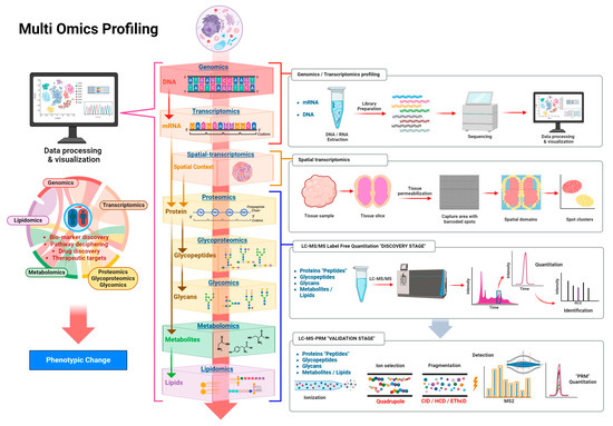 - Gutierrez Reyes, C.D.; Alejo-Jacuinde, G.; Perez Sanchez, B.; Chavez Reyes, J.; Onigbinde, S.; Mogut, D.; Hernández-Jasso, I.; Calderón-Vallejo, D.; Quintanar, J.L.; Mechref, Y. Multi omics applications in biological systems. Curr. Issues Mol. Biol. 2024, 46, 5777–5793. [Google Scholar] [CrossRef] [PubMed]