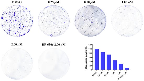 OVCAR3 cells (4 × 103/well) were seeded into 6-well plates and incubated for 24 h at 37 °C in a 5% CO2 atmosphere. Compound MY-14 was then added at varying concentrations, followed by a 14-day incubation period. Subsequently, cells were fixed with a 4% paraformaldehyde solution and stained using crystal violet solution, after which colonies were quantified using ImageJ 1.54 software.