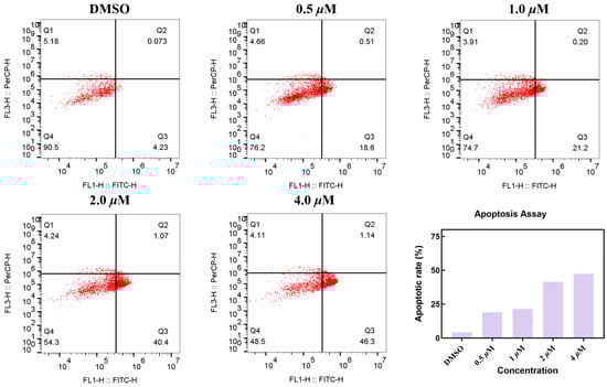 To elucidate the mechanism of action of compound MY-14, we assessed its ability to induce apoptosis in CCNE1-amplified breast cancer cells (HCC1569). As shown in Figure 4, compound MY-14 induced apoptosis in a concentration-dependent manner, with a maximal apoptotic rate of 47.44%. These results suggested that compound MY-14 promoted cell death by inducing the apoptotic pathway.