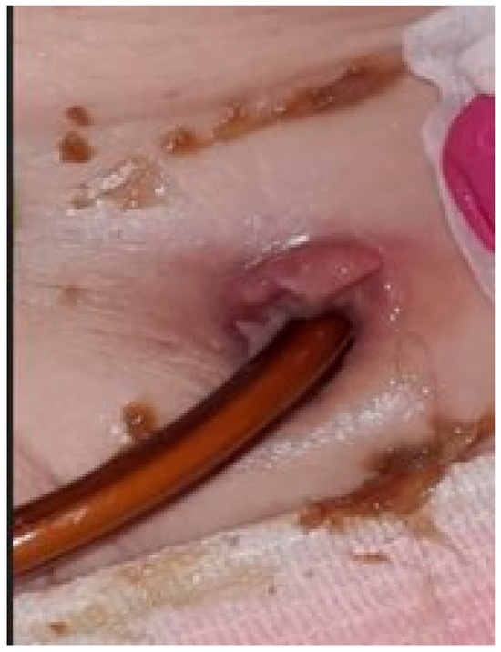 If the response to the therapeutic test was favorable, a gastrojejunostomy, with the insertion of the percutaneous endoscopic gastrostomy–jejunostomy tube (PEG-J), was performed, with the permanent fitting of the device, which established effective therapeutic doses.