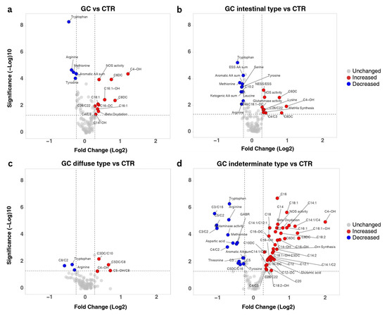 - Li, D.; Lu, Y.; Zhao, F.; Yan, L.; Yang, X.; Wei, L.; Yang, X.; Yuan, X.; Yang, K. Targeted Metabolomic Profiles of Serum Amino Acids and Acylcarnitines Related to Gastric Cancer. PeerJ 2022, 10, e14115. [Google Scholar] [CrossRef]