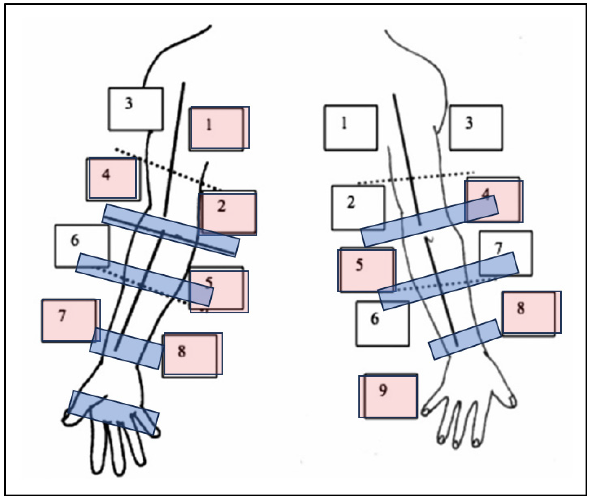 | Right forearm | 22.91 ± 2.93 | 20.27 ± 5.18 | 0.098 |